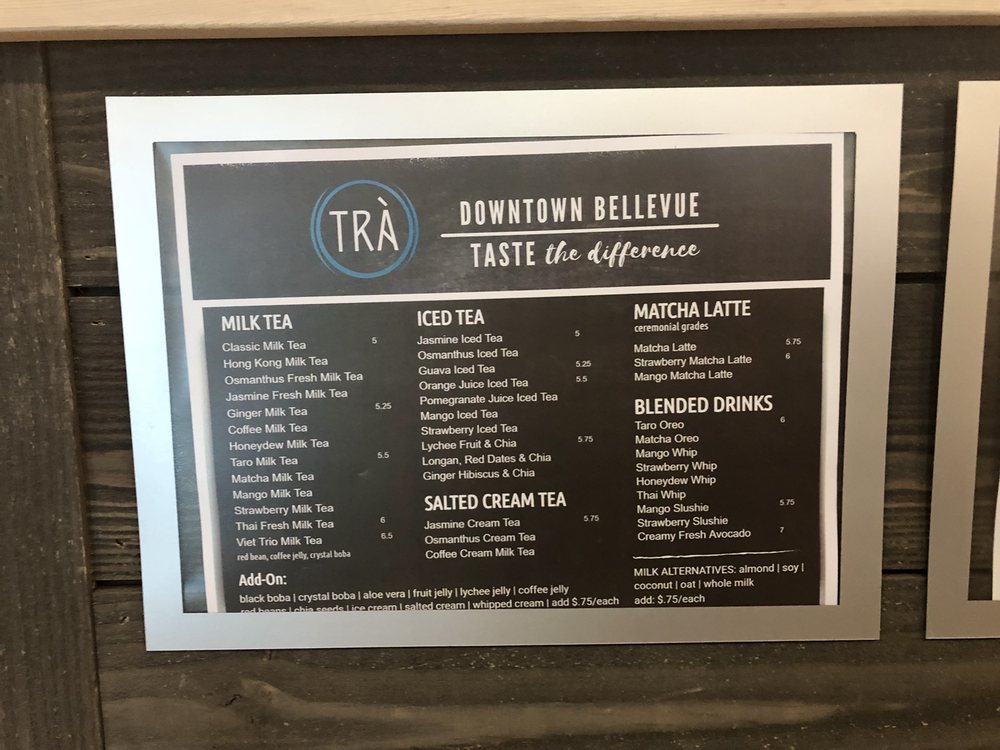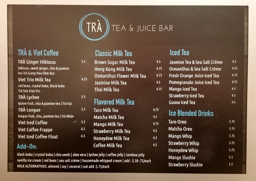 TRÀ Viet Coffee & Tea - Bellevue Menu (2025 Update)